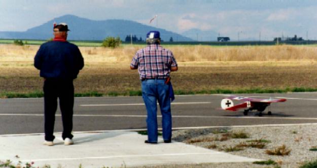 The picture on the left is of of myself on the left and my good friend Neill Udell on the right. Neill was the pilot on all of the drops that we made with the CAMS club in Cour de'Alene, Idaho. The second picture is taking off for a drop. Picture three might as well be titled "Neill, can you still see the airplane"?, as the airplane was up quite high. The other two pictures are air shots of Little Juan.