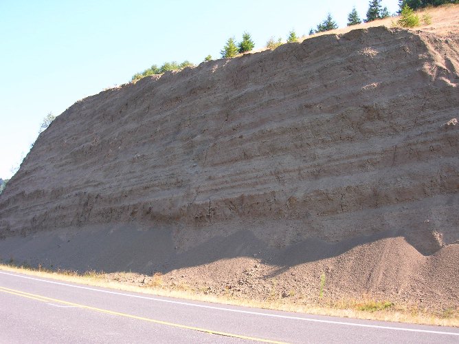 Ancient lahar layers from the Oligocene age along Highway 504 about a mile before the Hoffstadt