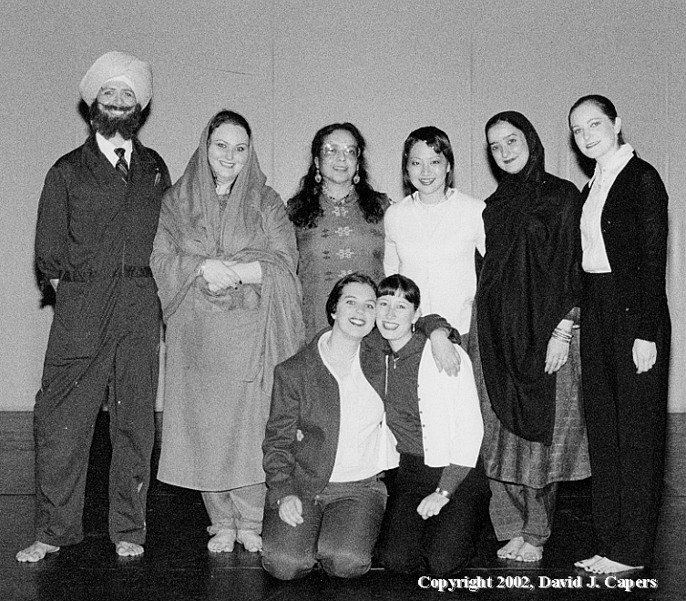 Urvasi Dancers and TESC students who enacted Ratna's choreography about Americans' reaction to September 11th. This photograph is here temporarily. Soon it will be moved to Ratna's Evergreen Orissi page along with a few images from the performance.