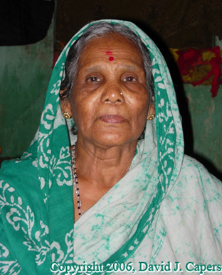 Parasumani Mahari in Puri, Orissa, February of 2006. She no longer sings in the Puri temple, but still has a beautiful voice. Youngest of the devdasis she now lives with her brother's family and ekes out a living giving music lessons.