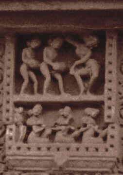 evidence of the peculiar style of dance known as Orissi, with the deflected