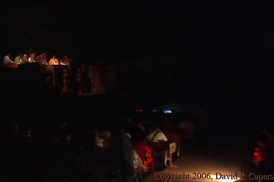 The musicians are seated (upper left) on a platform of the Konarak Temple stage set.