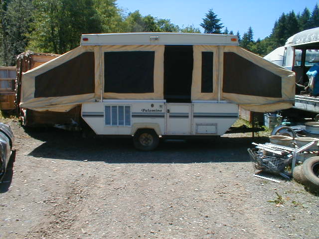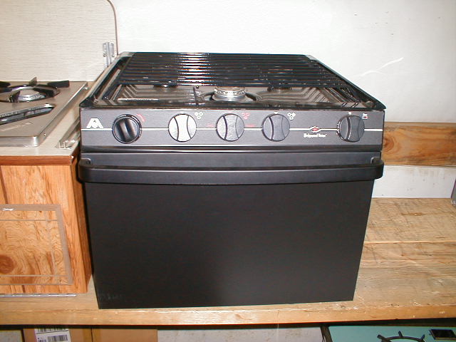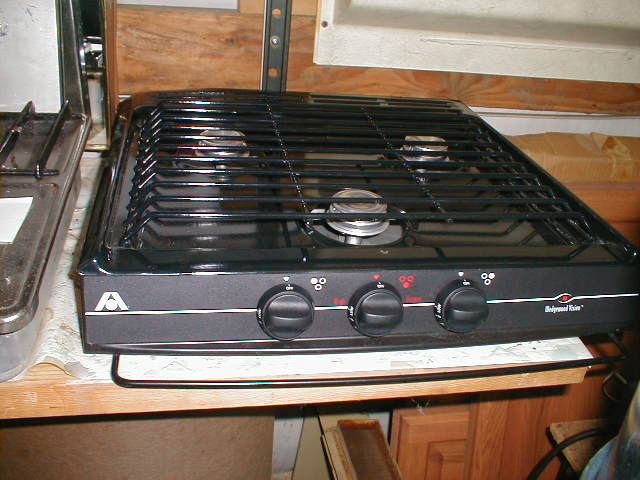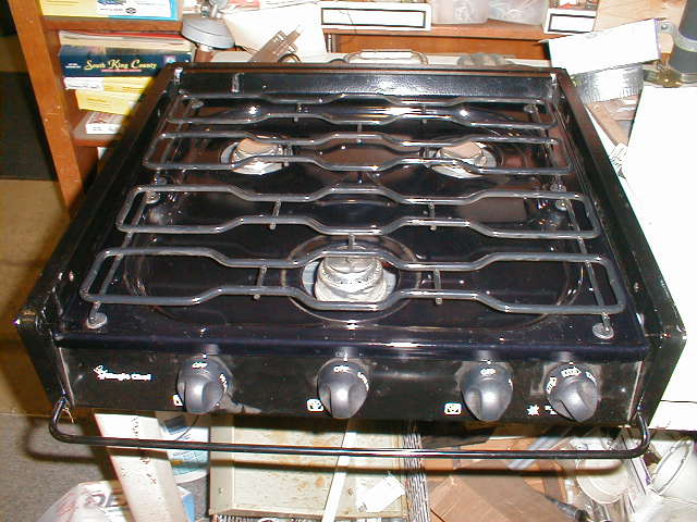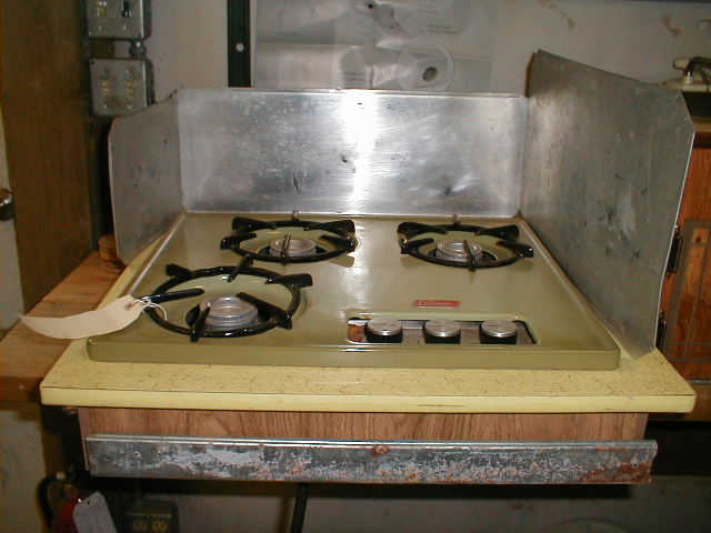 Used Coleman: 3 burner, set in slide out counter for tent trailer