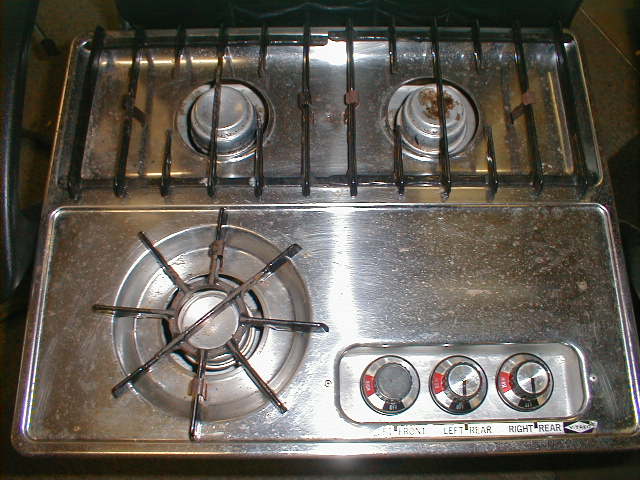 Used Vitreo: 3 burner with cover/splash guard, rusty and somewhat pitted.
