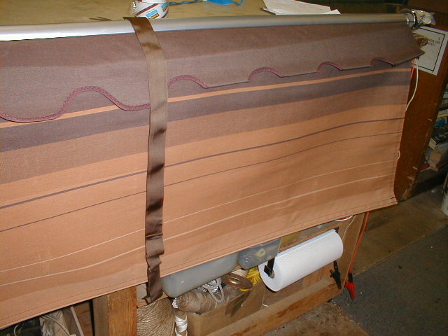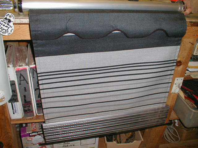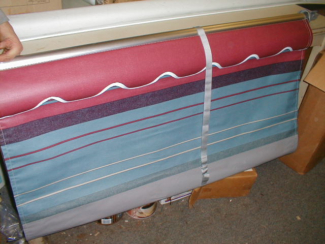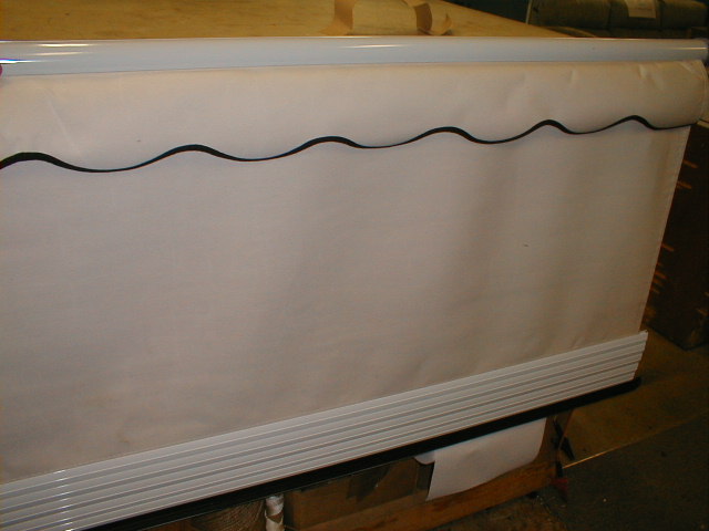 17' 3" Awning: A&E, Full Size W/Tube, Rail and Arms, Complete. Silver, Black, White.