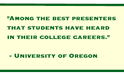 Todd's workshops inspire participants to take active leadership in preventing violence through practical prevention and intervention strategies. Todd's programs are highly interactive and utilize music, experiential exercises, and group discussions. Program participants examine their own beliefs and behaviors about gender roles, masculinity, sexual harassment and sexual assault.