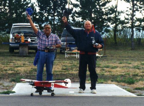 The picture on the left is of of myself on the left and my good friend Neill Udell on the right. Neill was the pilot on all of the drops that we made with the CAMS club in Cour de'Alene, Idaho. The second picture is taking off for a drop. Picture three might as well be titled "Neill, can you still see the airplane"?, as the airplane was up quite high. The other two pictures are air shots of Little Juan.